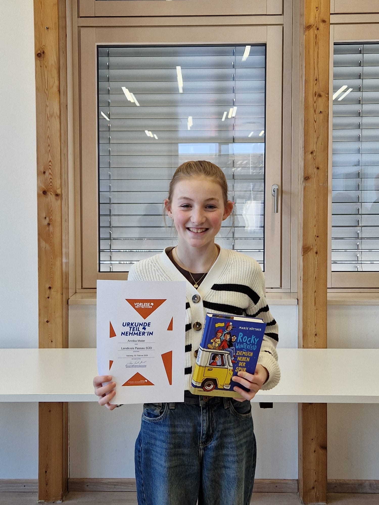 Beim Kreisentscheid des Vorlesewettbewerbs in Passau Land Süd stellte sich Annika Maier aus der 6. Klasse als Vertreterin der Evangelischen Realschule Ortenburg einem starken Teilnehmerfeld. Bereits die Teilnahme auf Kreisebene ist ein großer Erfolg – und Annika zeigte eindrucksvoll, warum sie sich zuvor auf Schulebene durchgesetzt hatte.